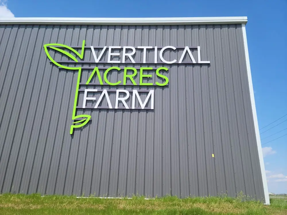 A single set of non-illuminated flat cut out letters mounted onto stringers mounted to the corrugated building fascia.