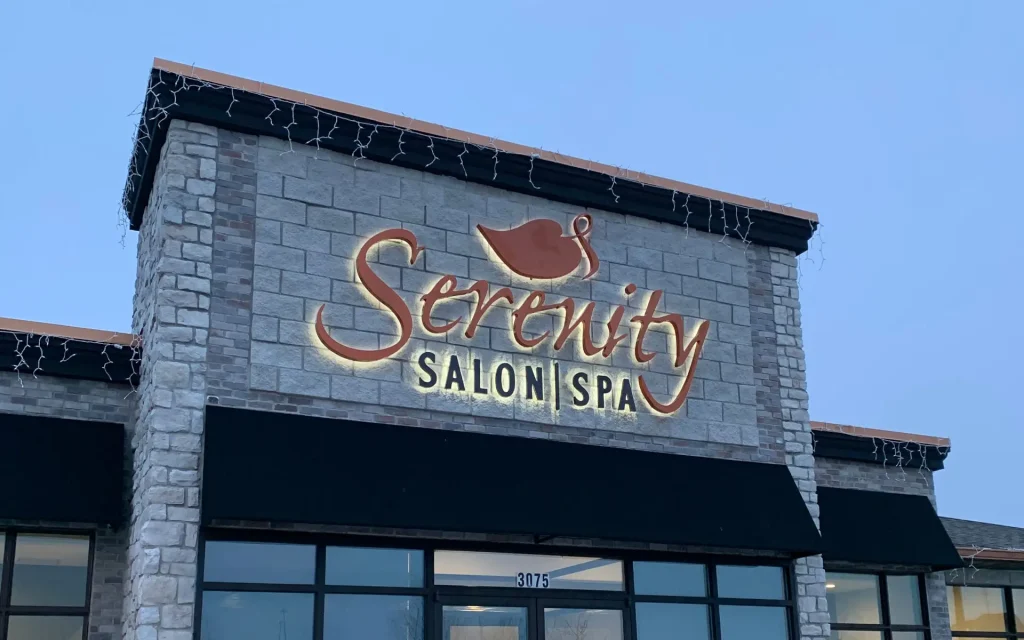 In general, a halo lit sign (also known as a reverse channel letter sign) has dimensional letters that stand out from the building wall. Then, the sign is illuminated from behind, creating a halo effect around the sign. A halo lit sign in South Bend makes any business stand out from the crowd.